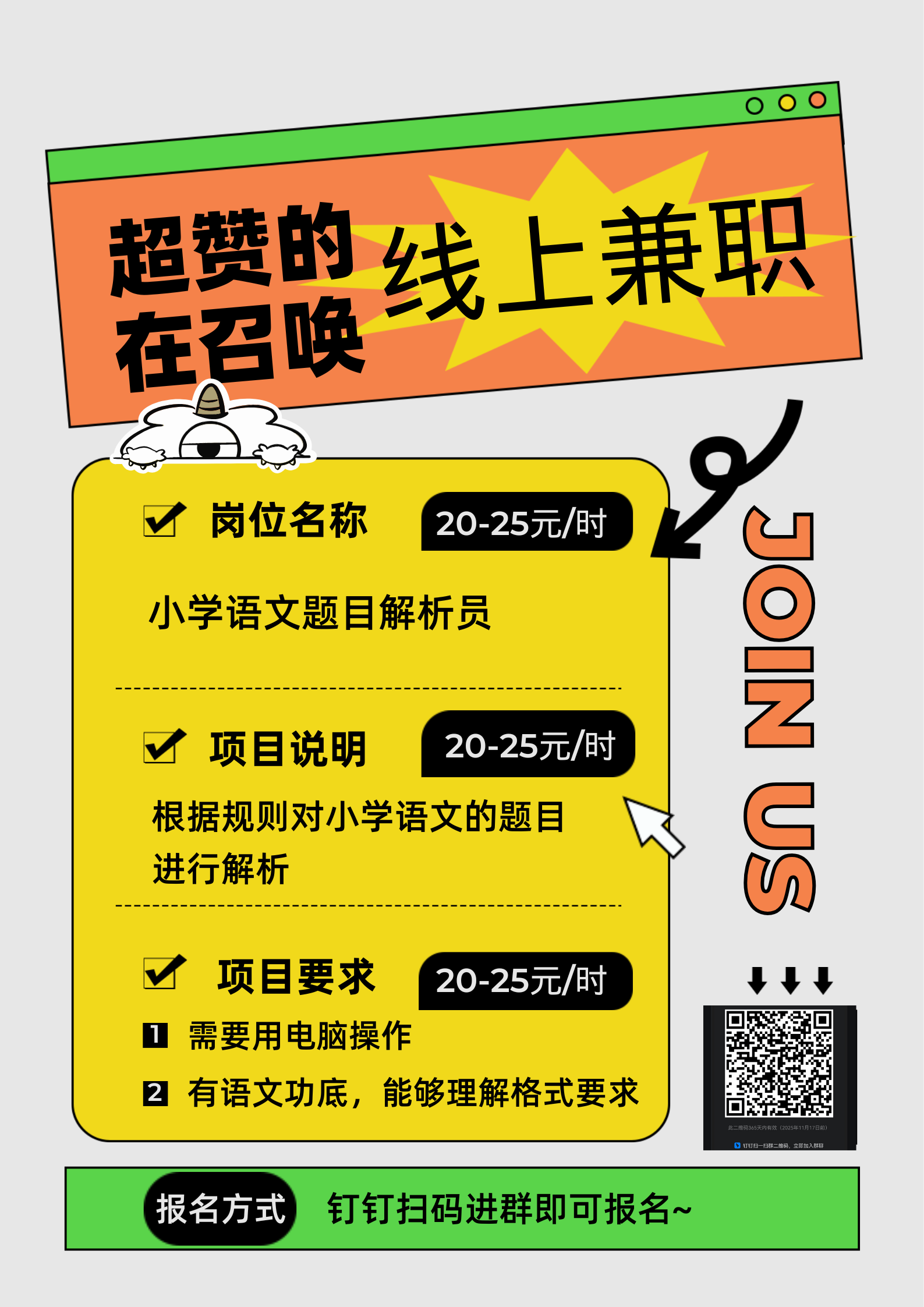 | 20-25元/时,有电脑即可做的线上兼职!批改作业~ |